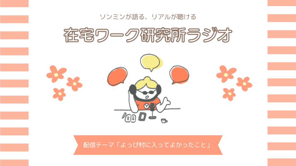 在宅ワーク研究所ラジオは、〝おうちで働く〟を実現するコミュニティー 「よっぴ村」に所属するソンミンが発信しています!